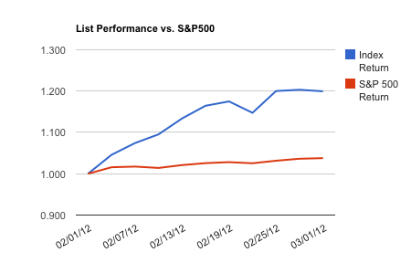 We also created a price-weighted index of the stocks mentioned below, and monitored the performance of the list relative to the S&P 500 index over the last month. To access a complete analysis of this list's recent performance, click here.