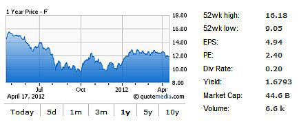 It has done well this year also. Recently, Ford raised its 2012 salesforecast. Its previous sales forecast was between 13.5 and 14.5 million in sales but now it is looking at close to 15 million. It is the North American operations that are carrying the company. Just in the U.S., first quarter sales were the best the company has had in the last four years. Plus, March was the best since 2007 with the Ford Fusion recording its best month ever and the F-Series showing the strongest March sales in five years. Canada has shown surprisingly similar success this year. January and February set a stronger-than-expected pace for the year. So now Ford has increased forecasts for yearly car sales. For the year the company is projecting sales to be 1.67 million, which are 40,000 higher than was projected.