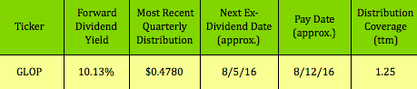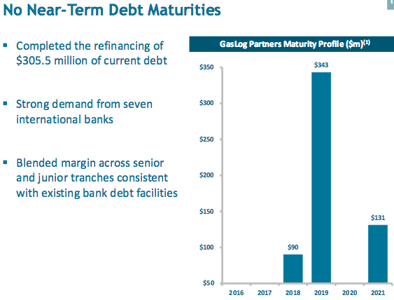 With the refinancing of its debt, GLOP now has no maturities until 2018.