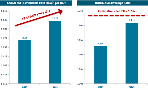GLOP has had strong DCF growth and distribution coverage growth since its 2014 IPO.