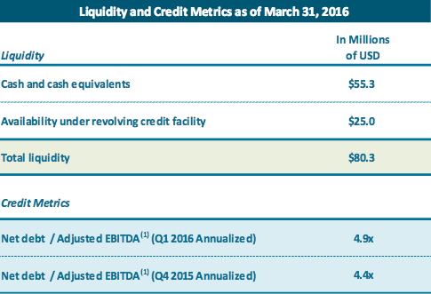 But all is not perfect in GLOP-vill. Its revenue, EBITDA and DCF declined in Q1 2016 vs. Q4 2015.