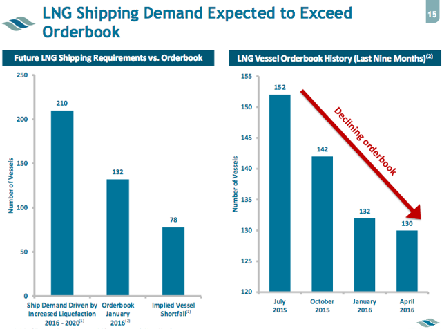 With all of this LNG production coming on, you would think that shipowners would be furiously ramping up their fleets...but they're not. In fact, there's a looming shortage of vessels in the LNG shipping industry as the vessel order book has declined.