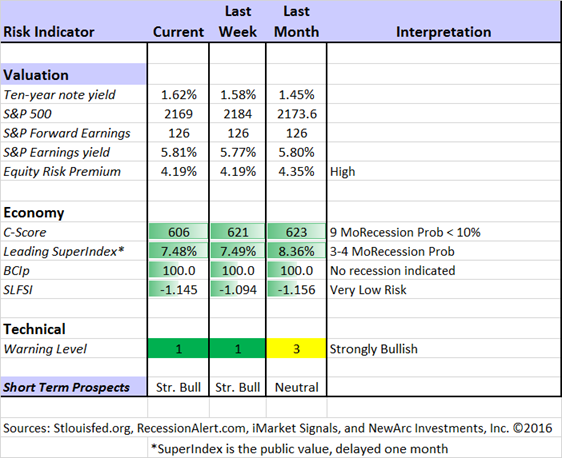 Bob Dieli: The "C Score" which is a weekly estimate of his Enhanced Aggregate Spread (the most accurate real-time recession forecasting method over the last few decades). His subscribers get Monthly reports including both an economic overview of the economy and employment.