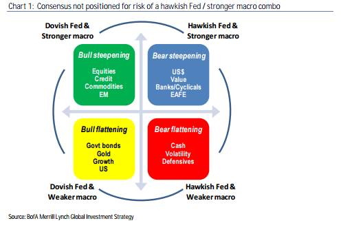 The bear steepening occurs when a stronger economy raises rates on the long end of the curve. It is bearish for bonds and bond proxies, but very bullish for economically sensitive stocks and banks. We saw some hints of this shift on Friday. Strong economic data, especially tighter labor markets, may (finally) move interest rates higher.