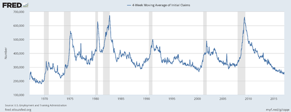 - Initial jobless claims fell yet again. The series is now at the lowest level since 1973. To my surprise, some of the punditry is actually finding a way to make this into bad news!