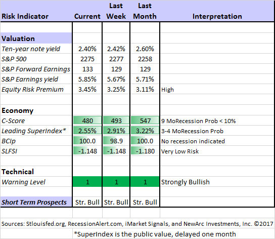 Although dropping last week, the yield on the ten-year note has increased significantly since the election. This has lowered the risk premium a bit. I suspect much more to come. By this I mean that the relative attractiveness of stocks and bonds will continue to narrow.