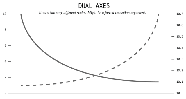 I occasionally give the Silver Bullet award to someone who takes up an unpopular or thankless cause, doing the real work to demonstrate the facts. No award this week. Nominations are welcome! For inspiration, you might test yourself on the misleading visualization techniques described by Nathan Yau. I see these daily, and so do you. The most common in financial posts is this one: