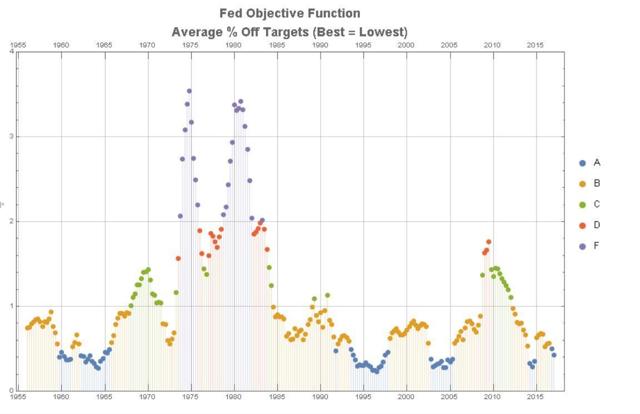 I submit that most of those criticizing recent Fed policy from various points of view seldom apply their proposals with the rigor shown above, or explain why they believe their alternative proposed measures of Fed policy success would be superior to its published methods, or where and when their different proposed measures would grade recent Fed performance poorly. I invite them to do so in the comments section below, or in their own articles.