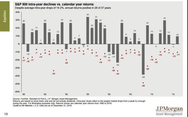 Doug has a special knack for pulling together all the relevant information. His charts save more than a thousand words! Read his entire post for several more charts providing long-term perspective, including the size and frequency of drawdowns.